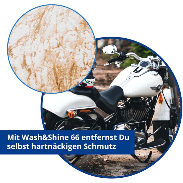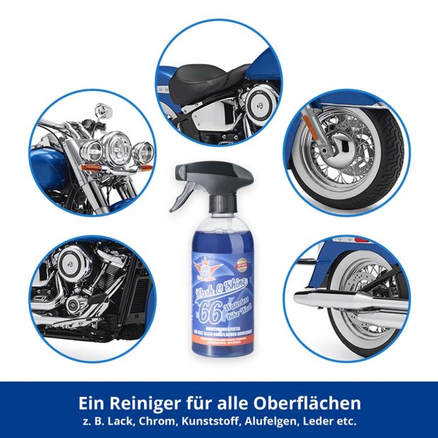 Exklusiv in Europa erhalten Sie bei Nanoprotect erhalten die professionelle Fahrzeugpflege Wash & Shine 66 von Shinykings California. Die Produkte ermöglichen die wasserlose Wäsche Ihres Motorrads oder Autos, ohne dabei auf Glanz verzichten zu müssen. Die materialschonende Spezialformel eignet sich nicht nur für den Lack, sondern unter anderem auch für Ledersitze und Felgen. Mit einem Produkt befreien Sie Ihr Fahrzeug von Schmutz oder Insekten und tragen gleichzeitig eine wirksame Autopflege auf!
