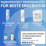 Nanoprotect Steinimprägnierung ist eine atmungsaktive 2 Phasen Imprägnierung für alle Arten von porösen oder saugenden mineralischen Untergründen. Das Produkt ist unsichtbar und verändert die Optik nicht. Außerdem werden behandelte Oberflächen weder rutschig noch klebrig. Selbstorganisierende Antihaft-Komponenten verleihen der Oberfläche eine unsichtbare, wasser- und schmutzabweisende Wirkung. Die Chance, dass Verschmutzungen tief in die Poren gelangen, wird minimiert und die behandelten Oberflächen lassen sich leichter reinigen.